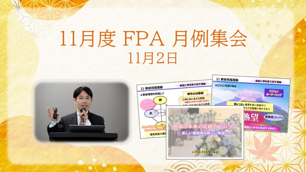 11月2日、恒例の月例集会が開催。今回は、新規参加者を視野に入れ、FPAの祝福観を紹介・解説する場となりました。