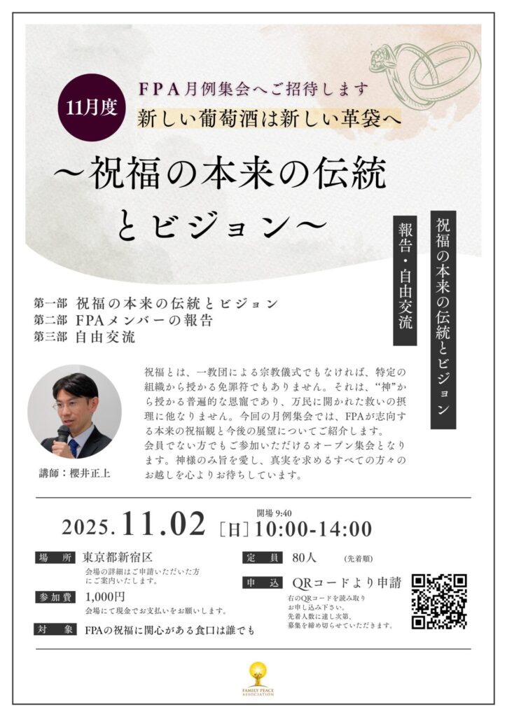 今回の月例集会では、FPAが目指す「本来の祝福観」と今後の展望について紹介します。